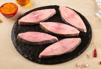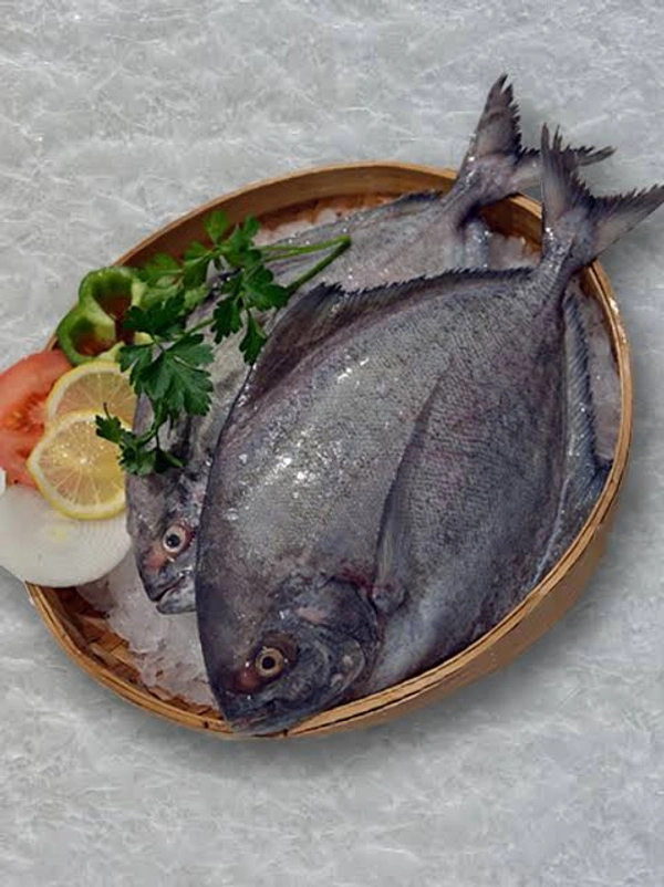 Throughout the boney Black Pomfret Steaks, the skin remains intact. Its mild flavour and firm texture make it one of the finest cuts of this fish, which can be fried or baked. A premium source of proteins and omega-3 fatty acids, the Black Pomfret, also known as Halwaa Fish, is caught straight from the seawaters.